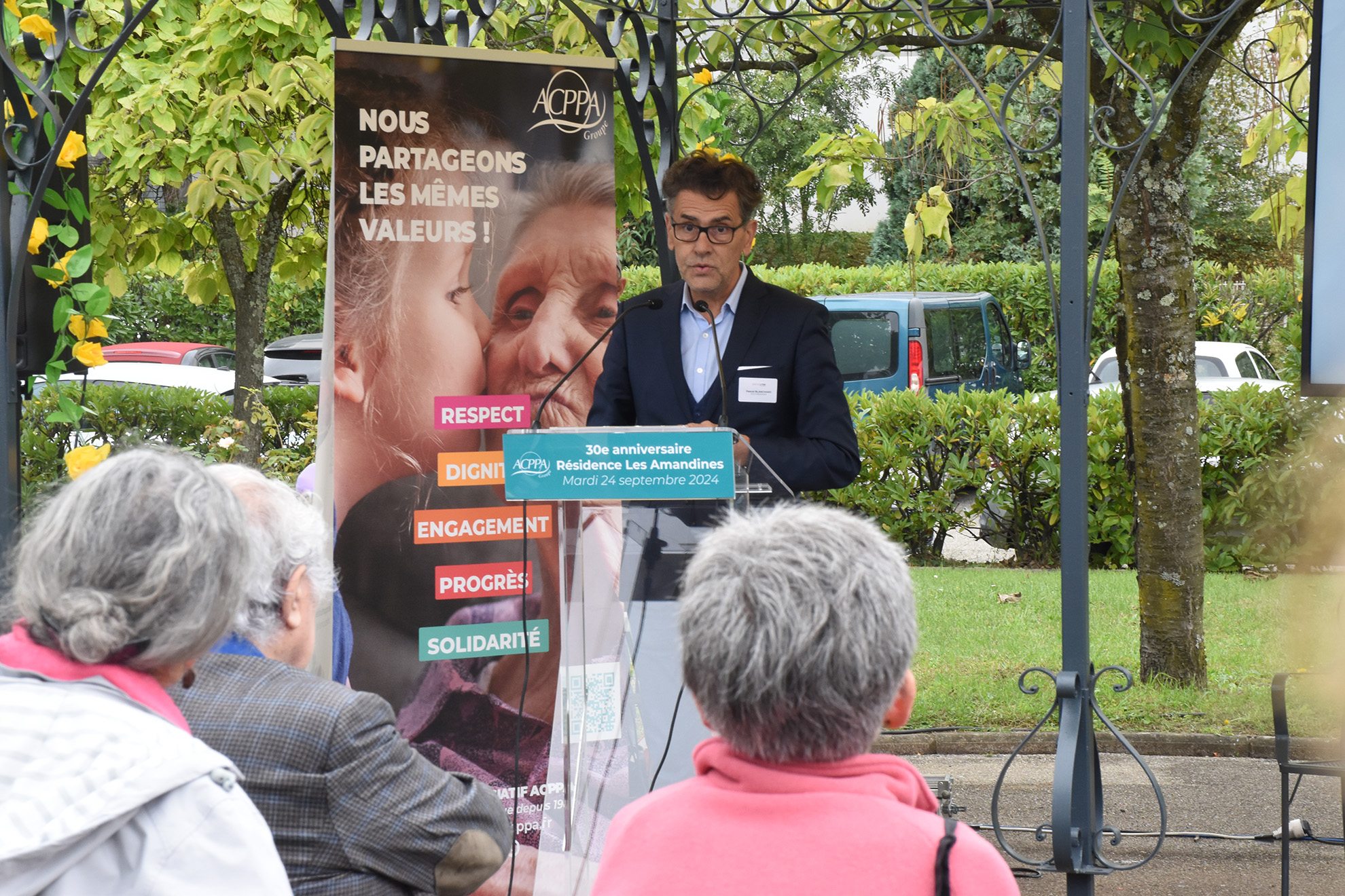Notre Présidente Brigitte Comte, Pierre-Yves Guiavarch (Directeur Général du Groupe ACPPA) et Laura Marcon, Directrice de l’établissement ont respectivement adressés des messages de remerciements aux équipes et aux résidents et membres du CVS pour leur confiance.